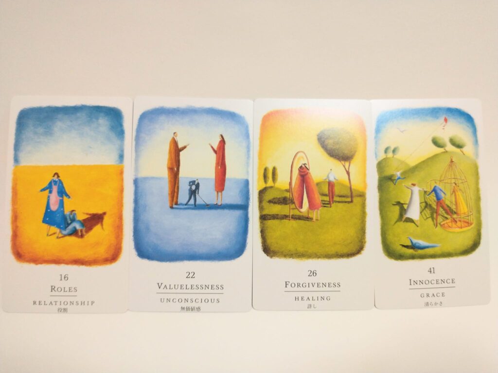 その行動できなかった理由を他のお友達にすぐに伝えたいと頭に浮かんで、お友達に喋ろうと連絡を取ったら次の日に話をすることになり、話が盛り上がって「カード引いてみてもいーい?」とお友達がセルフセラピーカードを引いてくれたのです。